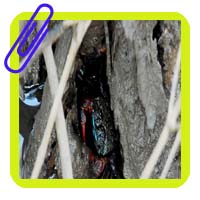 ปูแสมชนิดหนึ่งที่มีรูปร่างคล้ายคลึงกับปูก้ามดาบโดยมีก้ามขนาดยาว ใหญ่ส่วนขาเดินเรียวเล็กขุดรูอาศัยอยู่ตามหาดโคลนริมแนวป่าชายเลน ปะปนกับปูก้ามดาบกระดองมีความกว้างประมาณ 1.5 เซนติเมตร ก้ามมีสีส้มแดง